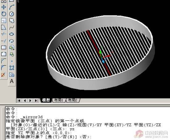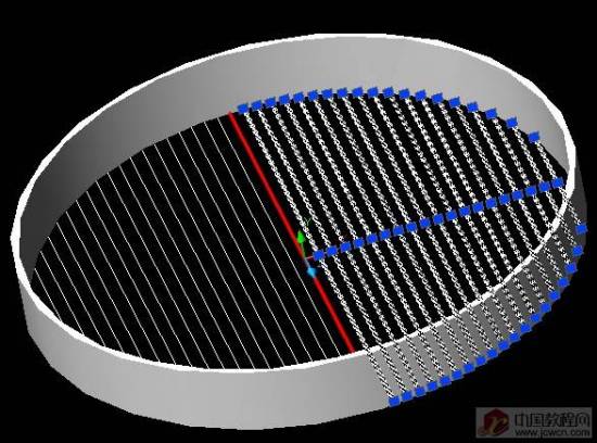 UCS如圖改變坐標軸,XY面垂直線,如圖做圓,圓半徑可自定!