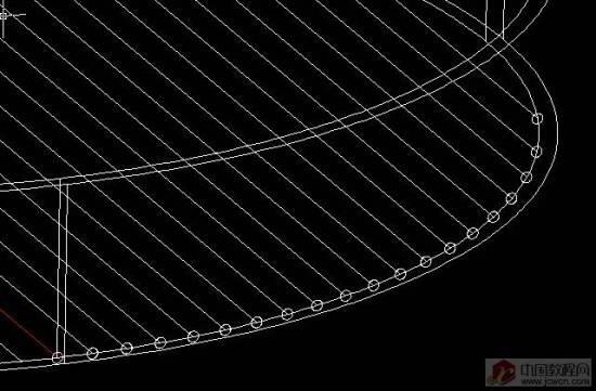 再把圓聯續復制COPY,圓心為每根的端點(復制時,我只復制一半,另外一邊,可用鏡像命令完成)!如圖: