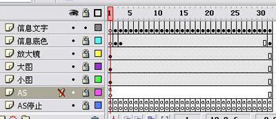 新建MC元件“放大鏡元件”,畫圓,圓的左右上下均必須居中。用剪切、粘貼到當前位置的辦法,把圓的色塊和邊框分別放在2個圖層中。把鏡片圖層中的顏色塊轉換為MC元件“鏡片元件”。在“放大鏡元件”中選中鏡片MC,在屬性中命名為ee。顏色塊是做遮罩用的,在swf文件中看不到它,只是在有顏色的部分能看到被遮蔽的“大圖”圖層中的畫面,所以顏色任意。鏡框在swf文件中是看得到的,顏色、式樣自定。再增加1個圖層放十字線,同鏡框一樣在swf文件中是看得到的。用“極細”線。