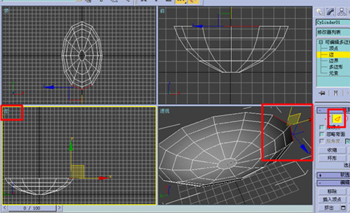 1、在頂視圖繼續(xù)調(diào)~~~2、透視圖選邊~~左視圖結(jié)合SHIFT鍵向右上方拉動