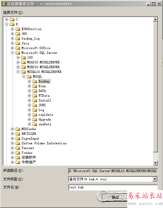 注意文件名記得加后綴.bak,便于恢復時的查找