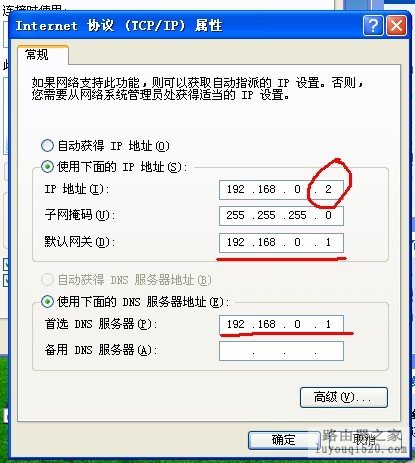 在常規(guī)里選擇(TCP/IP)設(shè)置,將ip地址設(shè)為 192.168.0.1 子網(wǎng)掩碼為 255.255.255.0 。這是Windows的默認(rèn)設(shè)置。請確保這個IP沒有被別的地方使用。