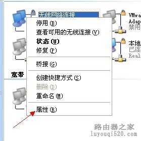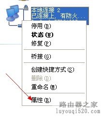 現(xiàn)在開始設(shè)置,首先設(shè)置本地連接的屬性,右鍵本地連接選擇屬性。
