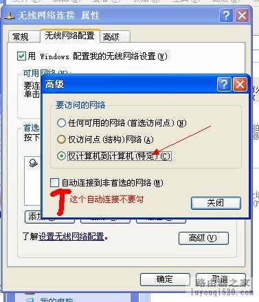 選擇“僅計算機(jī)到計算機(jī)”,自動連接這個選項不要選。