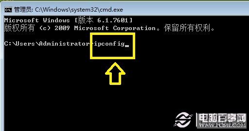 2、點擊確定之后,即可進入CMD命令符操作框,然后我們再鍵入" ipconfig "命令,然后按“回車鍵(Enter)”即可查找到路由器IP地址了,如下圖: