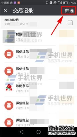 2)選擇【交易記錄】,然后再點擊右上角的【篩選】;(如下圖)