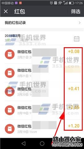 3)然后點擊【紅包】,就能看到收到和發出的紅包記錄了。(如下圖)