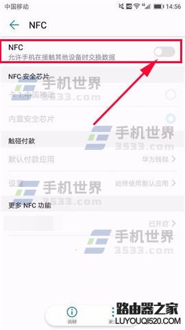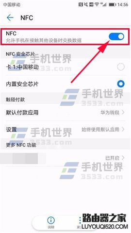 2)點擊【NFC】功能這一欄右邊的按鈕向右滑動即可開啟。(開啟后的圖標為藍色)(如下圖)