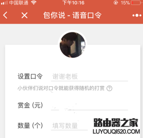 2、然后在該小程序界面需要屬于口令,收到這個語音紅包的人需要使用語音說出這個口令即可領取紅包哦,輸入賞金和數量,點擊【生成語音口令】,如圖所示。