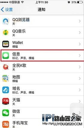 1、首先進入iPhone的「設置」,然后依次進入「通知」-> 「信息」設置,如圖。