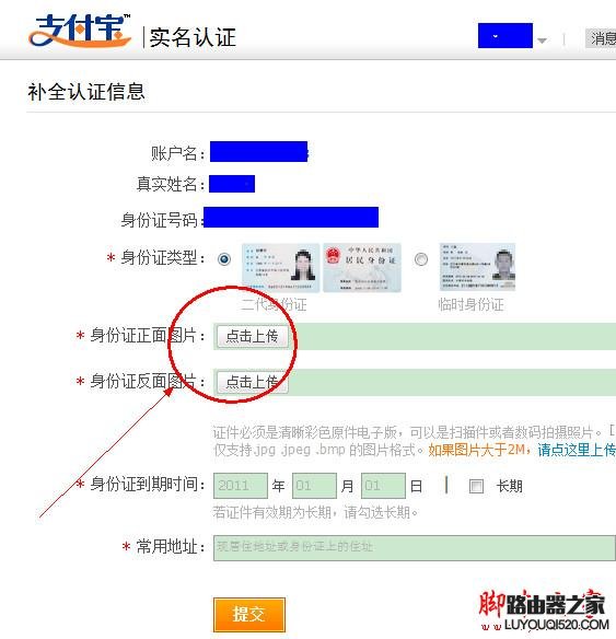 1、登陸支付寶實名認證,上傳證明自己的文件