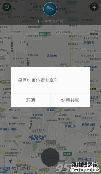 5.點(diǎn)擊右上角【↑】可返回聊天,點(diǎn)擊左上角的【關(guān)閉】則退出共享,在我們共享自己實(shí)時(shí)位置的同時(shí),好友接受了我們剛發(fā)的共享實(shí)時(shí)位置,微信會(huì)馬上進(jìn)行自動(dòng)定位,此時(shí)我們和好友的位置就顯示出來了,互相都知道到對(duì)方的位置了,這樣我們就定位了好友的實(shí)時(shí)位置