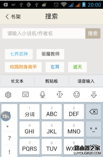 6、點擊搜索入口,到界面后搜索想要的書籍和小說