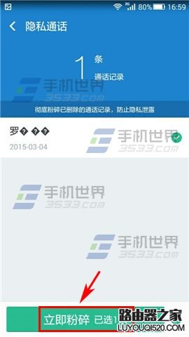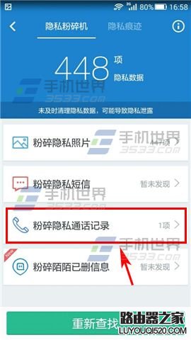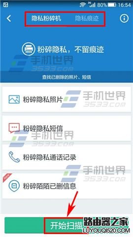 2)選擇【隱私粉碎機】或者是【隱私痕跡】,此處以【隱私粉碎機】為例,點擊【開始掃描】,等待掃描完成后點擊要粉碎的選項,比如【粉碎隱私通話記錄】;(如下圖)