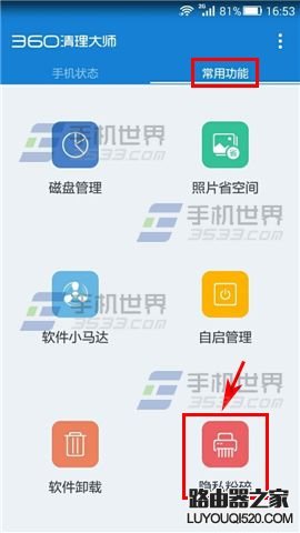 1)打開360清理大師,在【常用功能】欄點擊【隱私粉碎】;(如下圖)