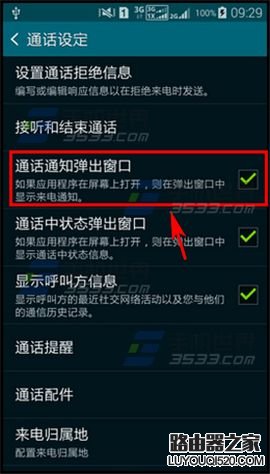 2)勾選【通話通知彈出窗口】,完成這個設(shè)置之后,在你打開某些界面或程序時,來電會以懸浮窗口顯示;(如下圖)