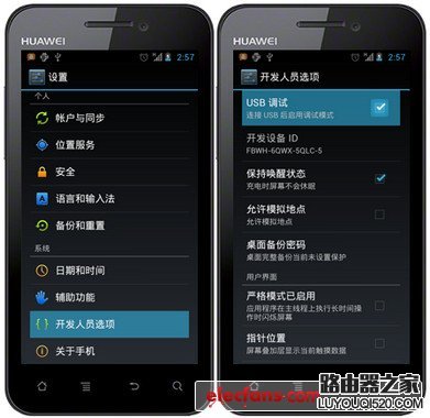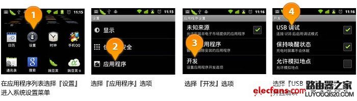 2、Android 4.0操作系統的打開方式會有所不同,同樣的方法進入設置-“開發人員選項”, 選擇進入后并勾選 USB調試.