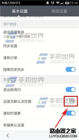 3)在基本設置頁面,劃至底部,把【設置為默認瀏覽器】一項的開關打開。(如下圖)