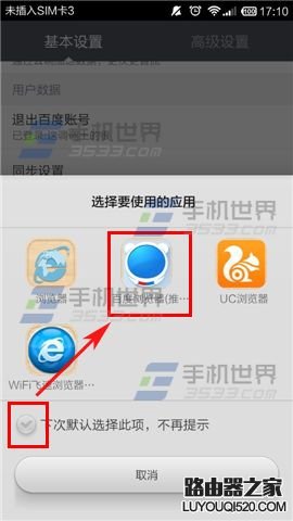 如果自己下載了多個瀏覽器,預覽什么鏈接的時候總是會彈出框框問你使用哪個瀏覽器進行瀏覽。如果你經常使用的是手機百度瀏覽器,那么干脆設置成默認瀏覽器,這樣就不用每次點擊鏈接的時候需要選擇瀏覽器啦。一起來看看這篇手機百度瀏覽器如何設置為默認瀏覽器的吧。