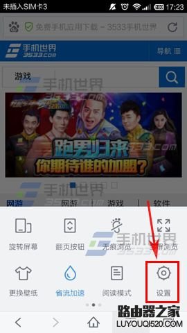 2)彈出菜單欄,用手指往左劃,劃至第二頁,點擊【設置】按鈕。(如下圖)