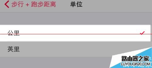 3、點(diǎn)擊“步行+ 跑步距離” 圖標(biāo),進(jìn)入詳細(xì)設(shè)置界面,然后就可以看到單位的設(shè)置選項(xiàng)了。
