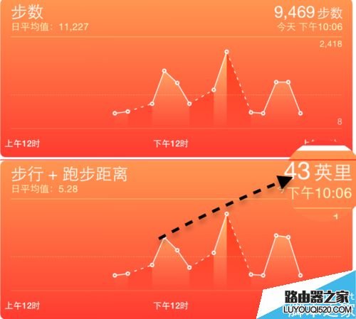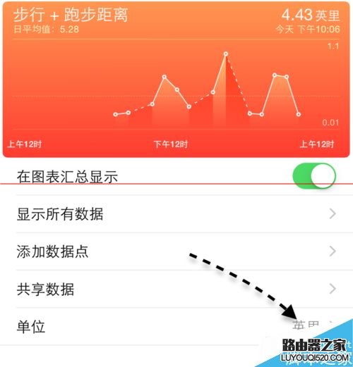 2、如下圖所示,在我的健康里,當(dāng)前步行距離是在“英里” 單位來顯示的。