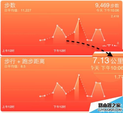5、隨后再返回步行距離圖標(biāo)時,就可以看到是以“公里” 來顯示了。