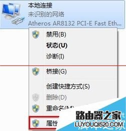 第三步:找到 本地連接,右鍵點擊并選擇 屬性。如下圖所示: