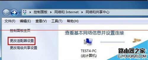 第二步:彈出 網絡和共享中心 的界面,點擊 更改適配器設置。如下圖所示: