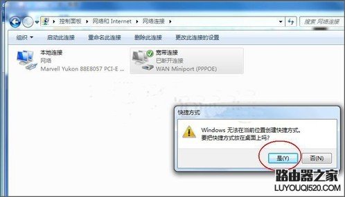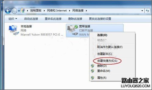 Windows7并沒有提供建立桌面快捷圖標的選項,所以,為了以后我們能方便快捷的使用寬帶連接,我們還需要創建一個寬帶連接快捷方式到桌面上,以方便我們下次快捷使用寬帶連接。具體方法如下: