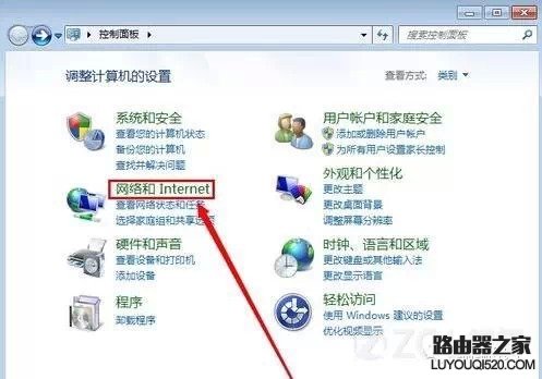 2.在打開的控制面板設(shè)置窗口里點(diǎn)擊“網(wǎng)絡(luò)和Internet” 如圖