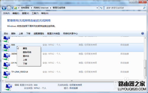 4、選中你要查看的wifi,然后右鍵單擊,選擇“屬性”菜單