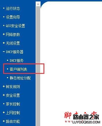 進入無線路由器的設置頁面,在左側欄目中打開DHCP服務器,選擇客戶端列表
