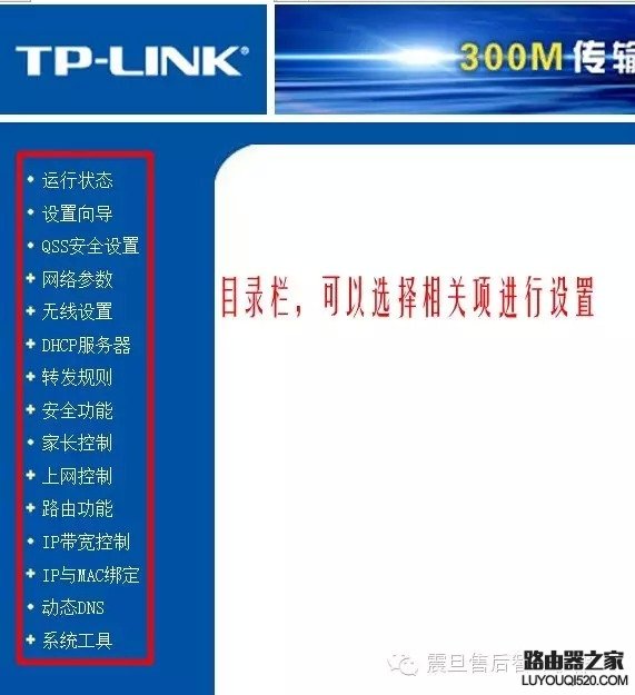 第二步:進(jìn)入路由器后進(jìn)行網(wǎng)絡(luò)參數(shù)設(shè)置:可以通過(guò)目錄欄選擇相關(guān)項(xiàng)就行設(shè)置