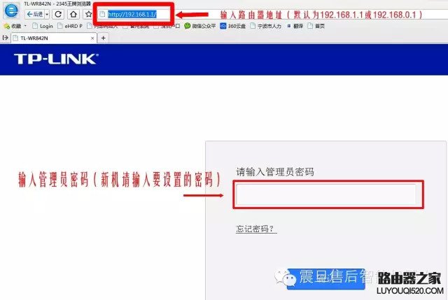 第一步:將路由器通電,用一根網(wǎng)線連接LAN口和電腦,(電腦IP請(qǐng)?jiān)O(shè)自動(dòng)獲?。缓笤跒g覽器輸入路由器IP(默認(rèn)為192.168.1.1或192.168.0.1),然后輸入管理員密碼。