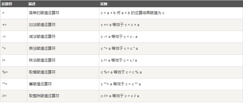 4.2賦值運算符(以下假設變量a為10,變量b為20)