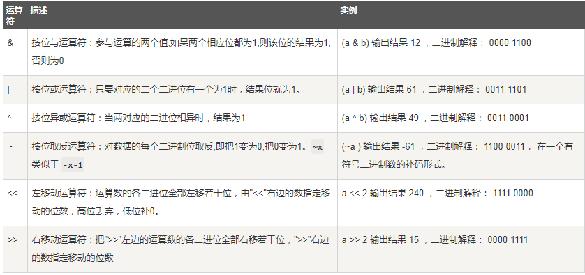 4.5位運算符 (以下假設變量a 為 60,b 為 13)