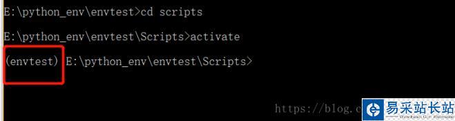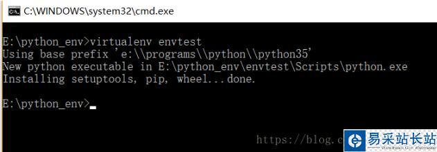3、在cmd中進入上一步創建的文件夾,并輸入 virtualenv envtest(虛擬環境名稱),如圖: