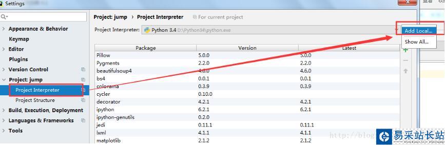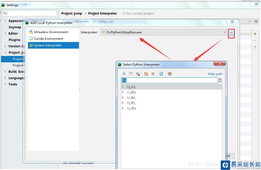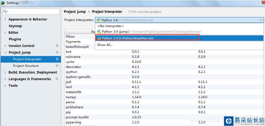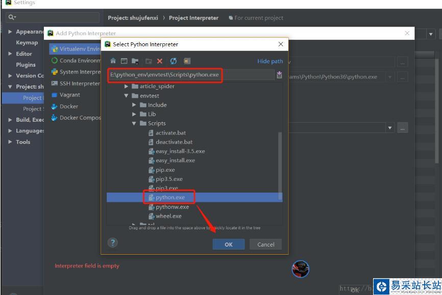 4、然后在回到settings截面就可以直接選擇python安裝目錄下的python.exe