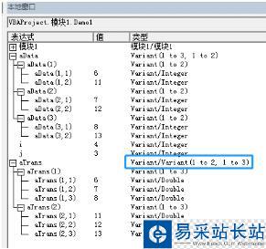 Sub Demo2() Dim aData(1 To 3, 1 To 2) For i = 1 To 3 For j = 1 To 2 aData(i, j) = i + j * 5 Next j Next i aData(1, 1) = Application.Rept("$", 256) aTrans = Application.Transpose(aData) ' Runtime error "13" Debug.Print UBound(aData, 1) & " x "; UBound(aData, 2) Debug.Print "=>>" Debug.Print UBound(aTrans, 1) & " x "; UBound(aTrans, 2)End Sub轉置失敗的原因在于aData(1,1)的字符長度為256,Transpose所能夠處理的數組元素字符長度最大為255。有時就是需要處理這樣的數組元素,那么我們可以使用自定義函數進行數組的行列轉置。TrasnposeArray可以實現二維數組的行列轉置。其效果與Transpose函數相同。