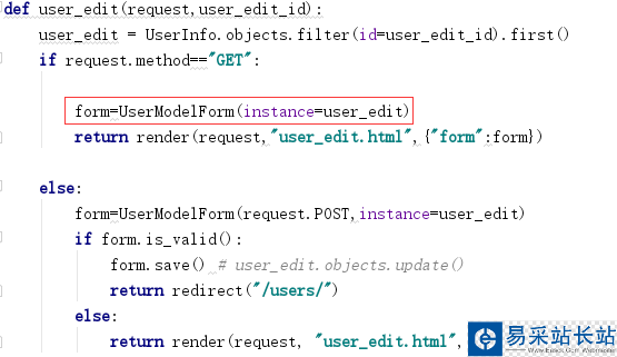 form.save #將數(shù)據(jù)保存至數(shù)據(jù)庫中(如果有instance參數(shù)就修改數(shù)據(jù)庫中的記錄,如果沒有instance參數(shù)就在數(shù)據(jù)庫中添加新的一條記錄)
