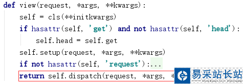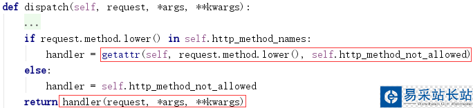 dispatch按請求方式反射到對應(yīng)的請求方法,getattr去self(視圖類)找get或者post方法并返回.
