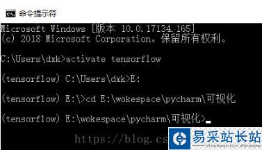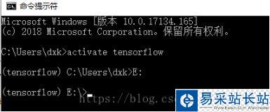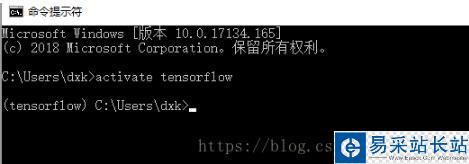 進(jìn)入cmd命令提示符,然后輸入activate tensorflow 激活tensorflow
