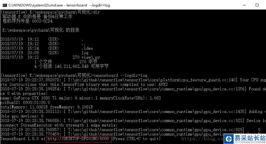 (3)輸入tensorboard --logdir=log,啟動(dòng)TensorBoard