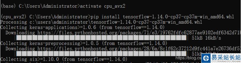 然后打開Anaconda Prompt,進入剛才創建的虛擬空間cpu_avx2,安裝即可: