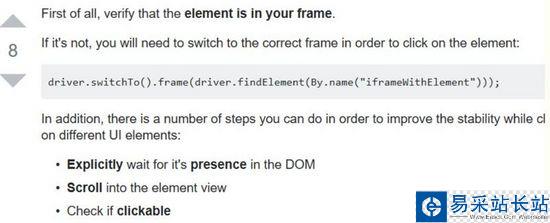 首先查看是否需要切換 iframe, 然后看看是否需要用js的方法來scroll滾動條,接著看看是否需要加等待時間,最后check下這個元素是否是可以點擊的。