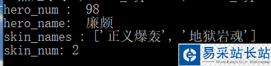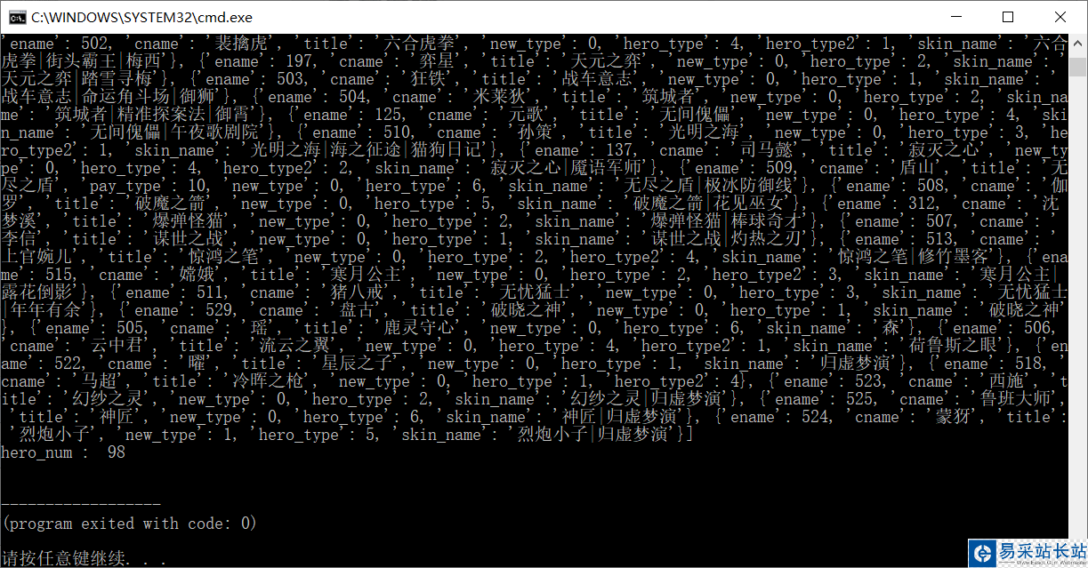以上代碼讀取英雄列表并存入hero_json,并獲取英雄數量,運行效果如下圖
