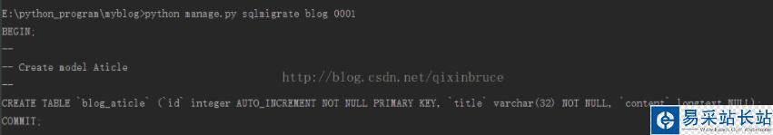 在該目錄文件下執行 python manage.py sqlmigrate 應用名 文件id ,可以查看sql語句: