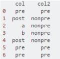 df['col2']=df['col1'] df.loc[df['col1'] !=' pre','col2']=Nonpre