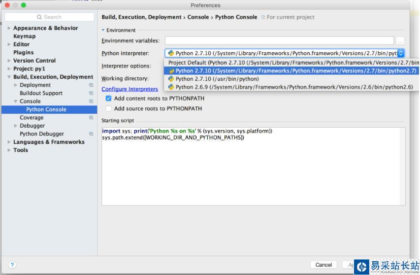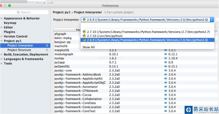 安裝了pycharm 5.0.1,創建了測試項目,發現python的版本是2.6.9的,系統自帶的版本好像是2.7的,為什么這樣,怎么切換到2.7